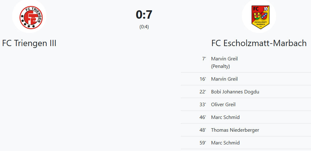 Der FC Triengen versuchte primär über den langen Ball, etwaige Entlastungsangriffe zu lancieren. Der Abwehrverbund der Gäste agierte jedoch zu abgeklärt, wirkliche Gefahr kam dabei nicht auf, und wenn, dann war Torhüter Ian Glanzmann zur Stelle. Die Gäste ihrerseits hielten das Tempo hoch, die eingewechselten Spieler fügten sich nahtlos ein und erarbeiteten sich zahlreiche Chancen. Nach dem Seitenwechsel ging es nicht lange, bis der nächste Treffer fiel, Marc Schmid eilte seinem Bewacher davon und versenkte die Kugel im Netz. Einen ähnlichen Angriff nutzte wenige Minuten später Thomas Niederberger, um das Ergebnis in die Höhe zu schrauben. Den Schlusspunkt in diese letztlich einseitige Partie setzte erneut Marc Schmid, wieder liess er seinem Gegenspieler im Laufduell keine Chance und versenkte trocken im unteren Eck. Pünktlich nach 90 Minuten und beim Stand von 0:7 pfiff der gut agierende Schiedsrichter die Partie ab und erlöste so das Heimteam. Mit diesem Sieg festigt der Tabellenführer aus Escholzmatt seine Position und bleibt auch im vierten Spiel ohne Punktverlust.
